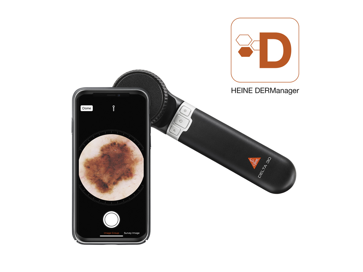 Das Heine DELTA 30 ist mit digitaler Schnittstelle ausgestattet, wodurch es nahtlos mit Dokumentationssystemen und Kamera-Adaptern kombiniert werden kann. So lassen sich Bilder von Hautbefunden einfach speichern und für Verlaufskontrollen nutzen.